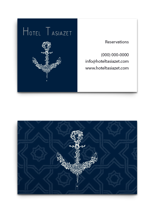 Logo Identity The client requested a fresh image for the Hotel Identity. The logo has to symbolize the company’s identity, and it has to be usable for any sort of communication event guaranteeing its recognisability. My design proposal is inspired by the proximity to the bay and to the ship graveyard. The use of simplify arabic patterns, which, together with the color palette, marine blue and vanilla, stimulate warmth in the brand. The simple typography reflects modernity, while the finely detailed traditional emblem provides balance, giving the brand authority and sofistication.